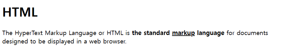 < > </ > : 태그에 주는 다양한 옵션은 모두 여는 태그에 지정하며, 닫는 태그는 태그 효과가 적용되는 범위의 끝을 나타냄.