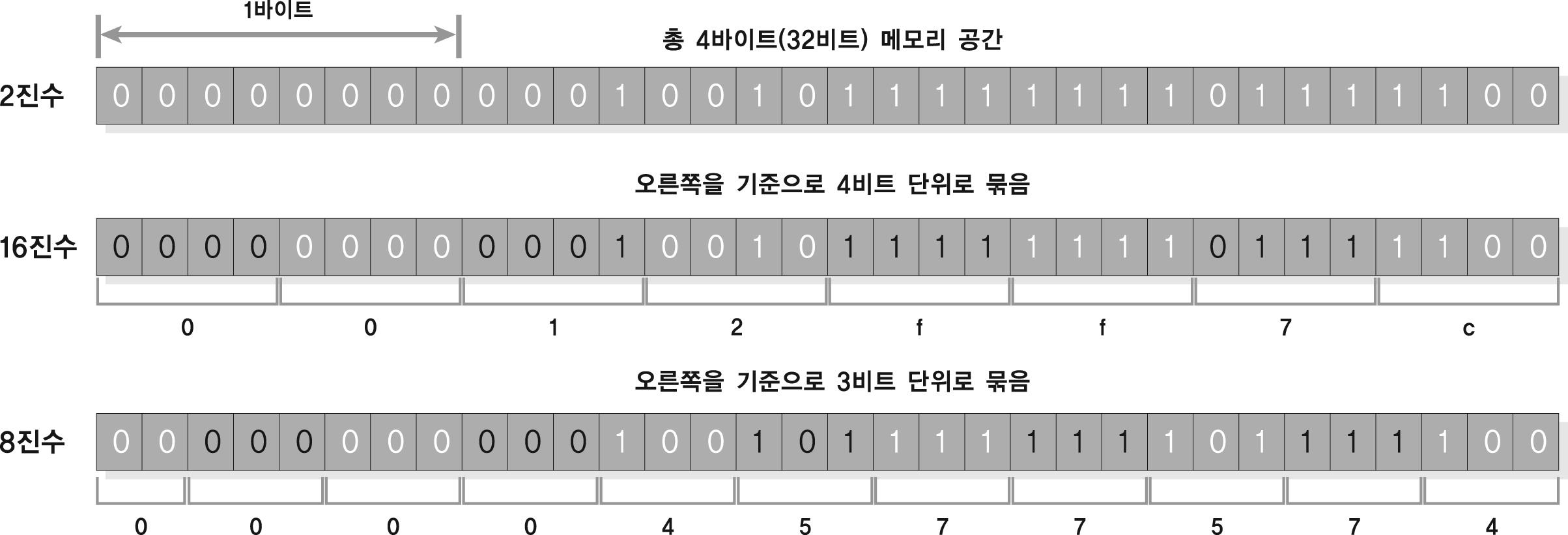 ※ 2진수를 16진수와 8진수로 표현하는 방법